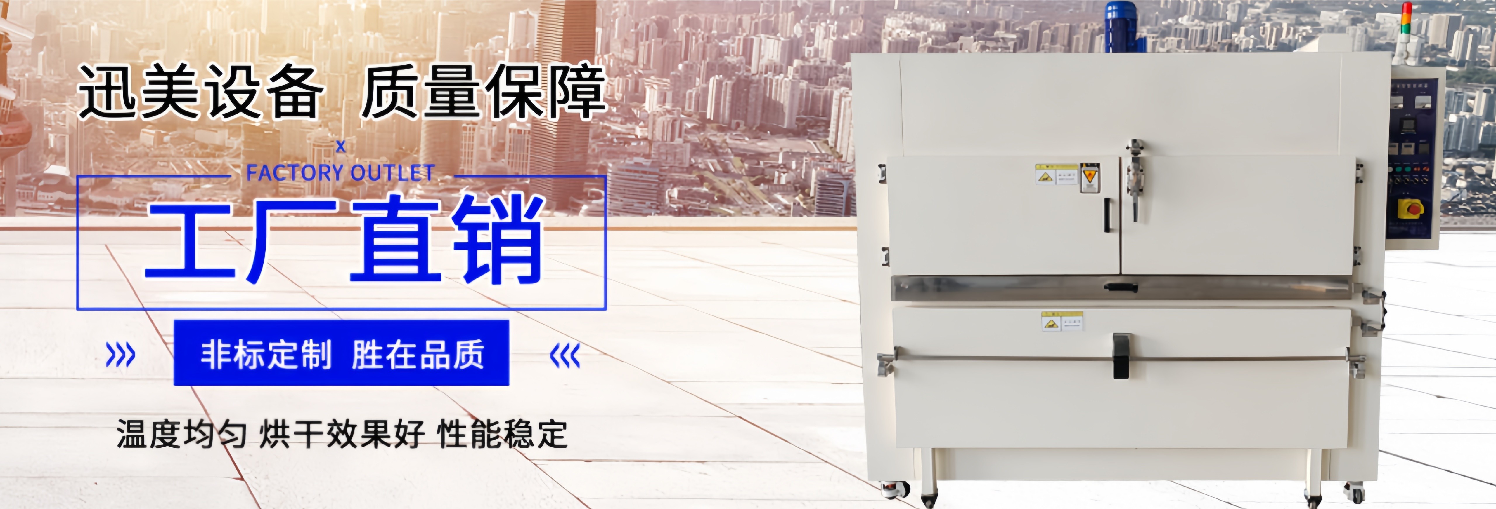上海迅美工業設備有限公司是一家專業生產銷售各類干燥箱、工業烤箱、高溫烘箱、網板烘箱、潔凈烘箱、充氮烘箱、分層烘箱、光電元件干燥箱、電焊條烘箱、臺車烘箱,UV機,UV光固機,隧道爐,烘干爐等烘干設備,適用于印制線路板行業,電鍍行業、電機行業、電力電子電容器行業、汽車行業、PVC塑模行業、儀器儀表行業、金屬制品行業等,
